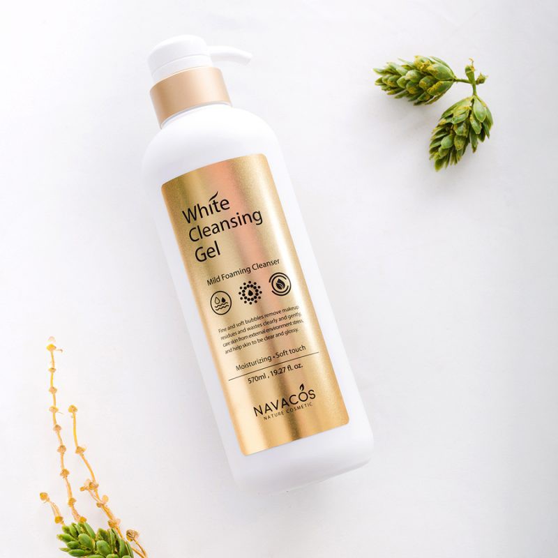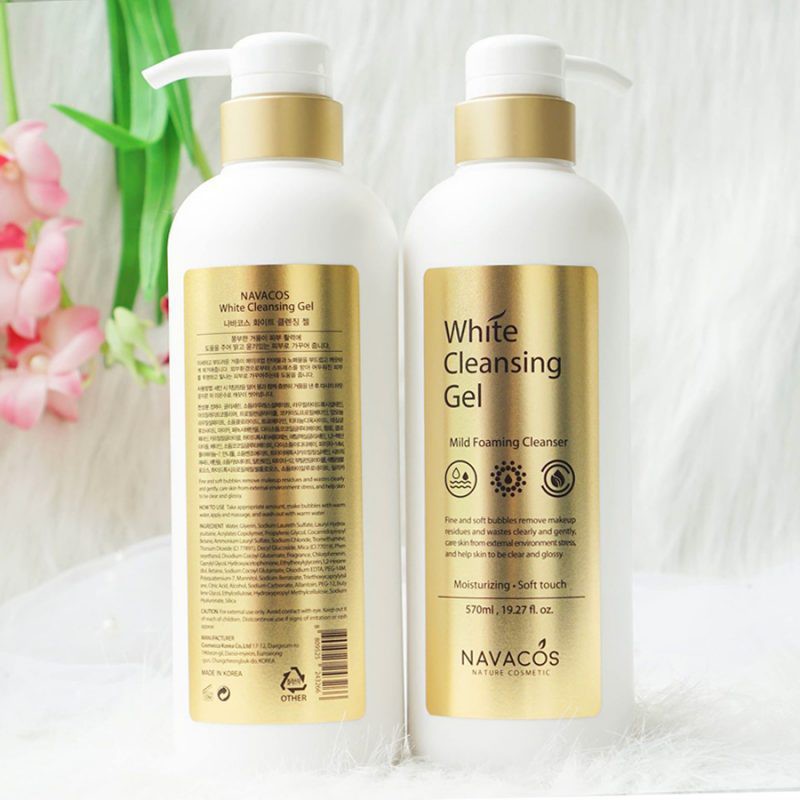 Sữa Rửa Mặt làm sạch dầu, nhờn và trắng da White Cleasing Gel Navacos Hàn Quốc 570ml free ship
