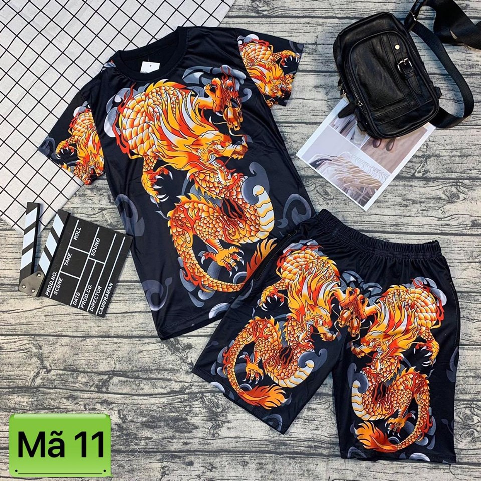 BỘ HÈ NAM IN 3D CAO CẤP ( RỒNG ĐỎ ) free ship