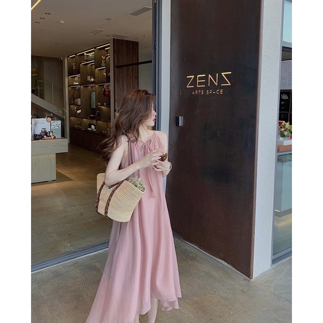 Đầm maxi hở lưng cột dây đan - Kèm ảnh thật
